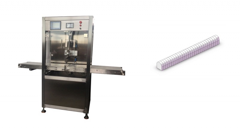 超声切割装置可以完成,即纵向产品矩形蛋糕上下切割。可以在控制面板控制切片厚度,可达毫米级别。例如蛋糕切片,把蛋糕在传送带上输送,在控制面板选择切割模式,设置切割厚度(毫米),机器会自动切割和计算蛋糕所到位置,然后切割蛋糕。