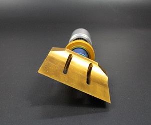 超声波切割原理是通过超声波发生器将50/60Hz电流转换成20、30或40kHz电能。被转换的高频电能通过换能器再次被转换成为同等频率的机械振动,随后机械振动通过一套可以改变振幅的调幅器装置传递到切割刀。切割刀将接收到的振动能量传递到待切割工件的切割面,在该区域,振动能量打开分子链的方式对胶料进行切割。